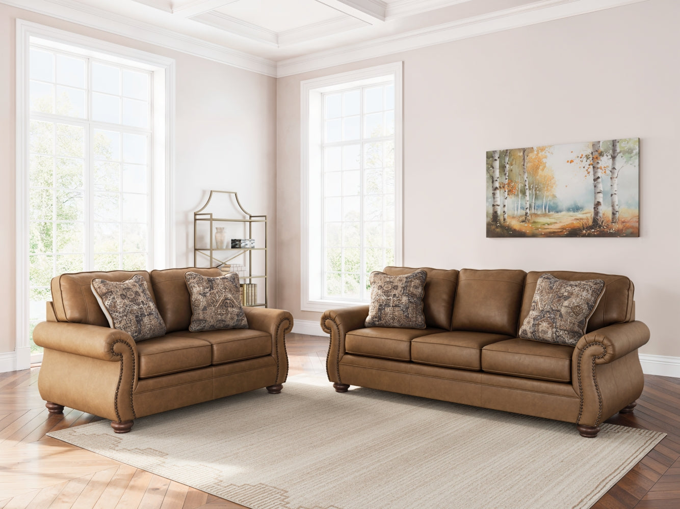 Everyone can have the best seat in the house with this seating package. Its nailhead trim puts the finishing touches on the traditional roll arms you love. Comfy, durable cushions—wrapped in a rustic yet sophisticated faux leather—keep you feeling relaxed. And the set's turned legs show that style and quality flow from top to bottom.