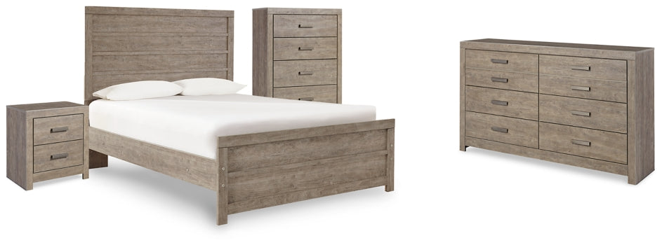 This full panel bed’s weathered driftwood finish evokes such an ethereal vibe—exactly what you need for a serene bedroom suite. Chunky moulding creates a plank-like effect while clean lines make for a timeless look you’ll love living with for years to come. Dresser, chest and nightstand included.