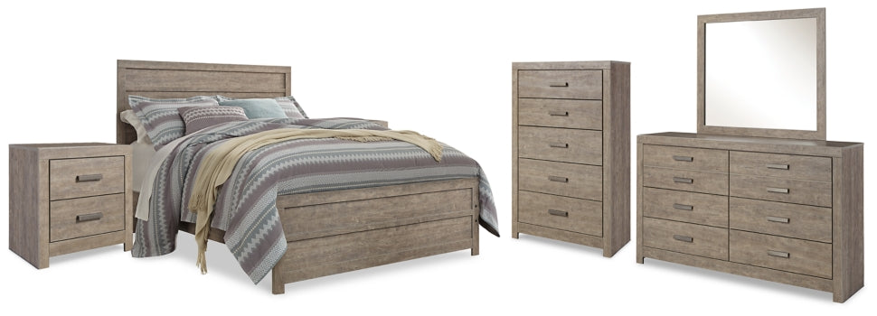 This queen panel bed’s weathered driftwood finish evokes such an ethereal vibe—exactly what you need for a serene bedroom suite. Chunky moulding creates a plank-like effect while clean lines make for a timeless look you’ll love living with for years to come. Dresser, mirror, chest and 2 nightstands included.