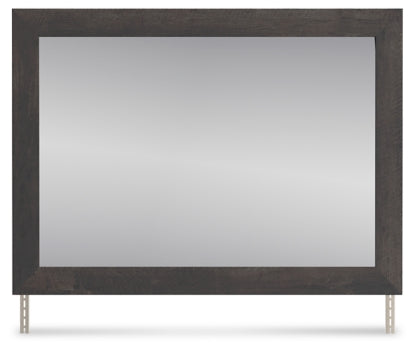 Elevate your aesthetic with dark, handsome hues. This bedroom mirror brings a commanding presence to traditional decor. With the look and feel of wood grain enhanced by deep charcoal tones, it's a stunning new take on neutrals.