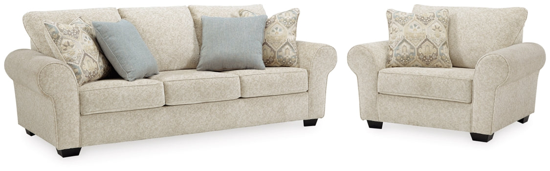 Blending classic elements like sumptuous flared roll arms with tailored box cushions and tapered black feet for up-to-date appeal, this sofa and chair package exudes that transitional aesthetic that looks and feels right at home. Offering plenty of room for everyone to make themselves comfortable, these pieces are wrapped in a soft, chunky weave fabric loaded in texture. Light and lovely ivory upholstery makes for such an easy-breezy blend.