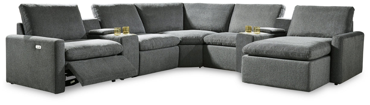 Fit for the comfort seeker in your household, this power sectional has that casually cool sensibility you love. Pillow top cushions with a feather-fiber blend are simply sumptuous. Chic and subtle chenille microfiber upholstery weaves in so much style.