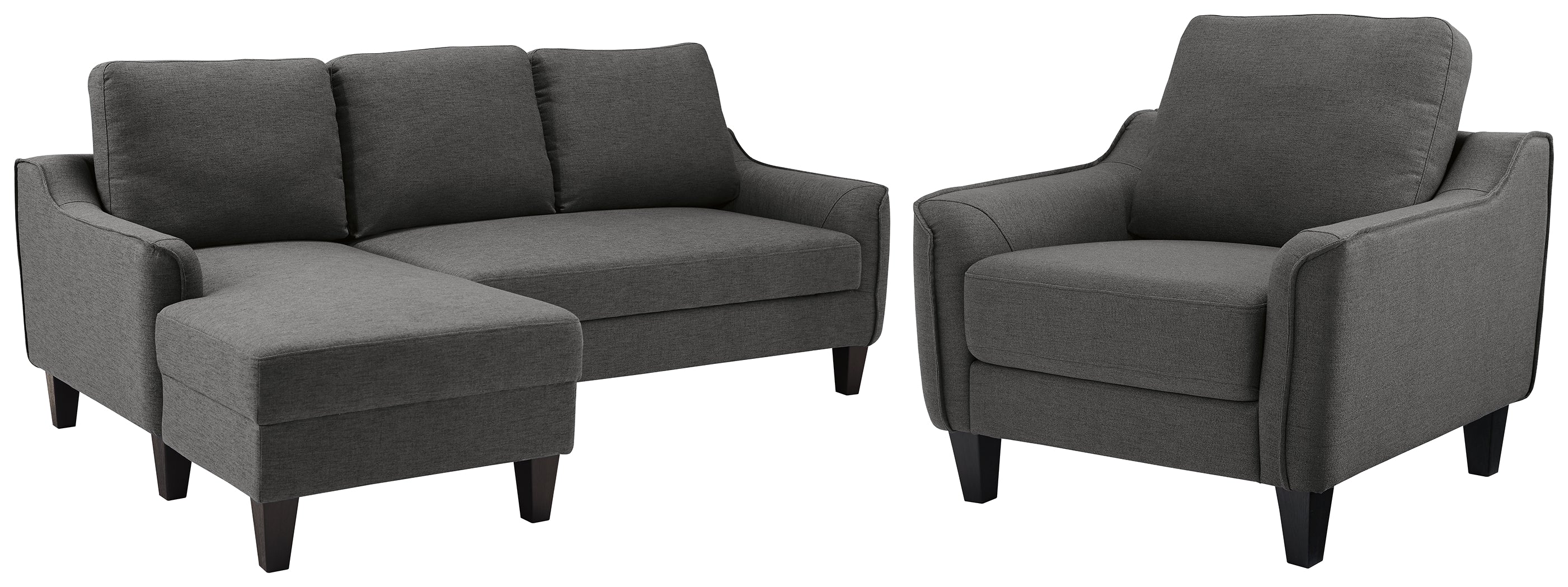 Small space living is easier than ever with this versatile sofa chaise sleeper and chair. The sleek silhouette is softened with oversized pillow backs creating a comfortable seating spot. Sporting sleek arms and friendly apartment sizing, these pieces make a fashionable first impression, and help create a blissful contemporary retreat that you'll want to sink back into every time.