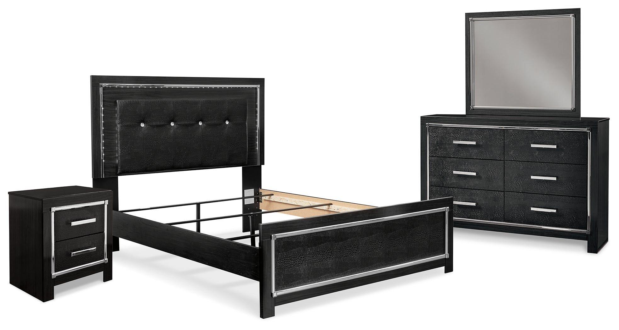 Rest easy. The luxurious look you’ve been dreaming of is yours for the taking, at a price sure to put you at ease. This king upholstered bookcase bed brings a sense of old Hollywood with a contemporary flair. A deep, dark finish, faceted chrome-tone accents and LED lighting exude Hollywood-chic style to the max. Padded windowpane stitching on the sleek, black upholstery infuses a sumptuous look that’s upscale and indulgent, and utterly on trend. Space for your favorite reads keeps them within easy reach.