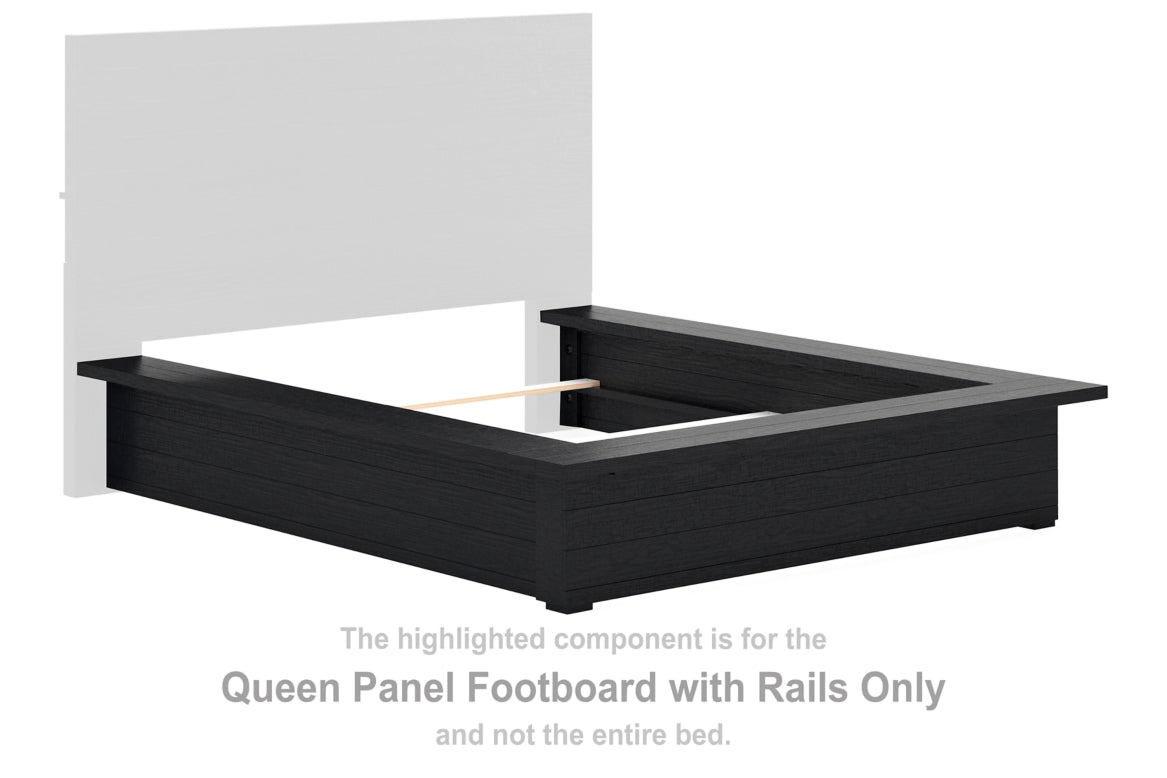 This queen panel footboard with rails is made with pine solids, veneers and engineered wood substrate. Pairs with other items in the series to make a bed kit.