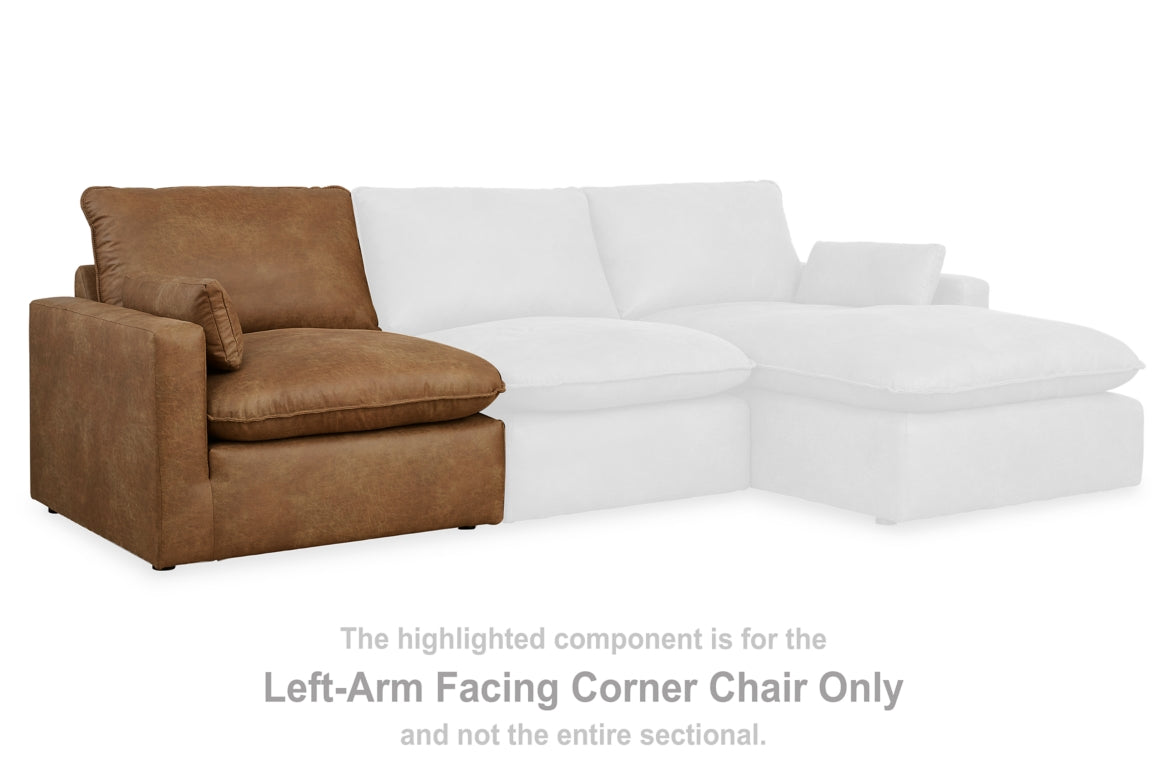 This left-arm facing corner chair is made with faux leather upholstery. Fully finished on all sides, it pairs with other items in the series to make a modular sectional.
