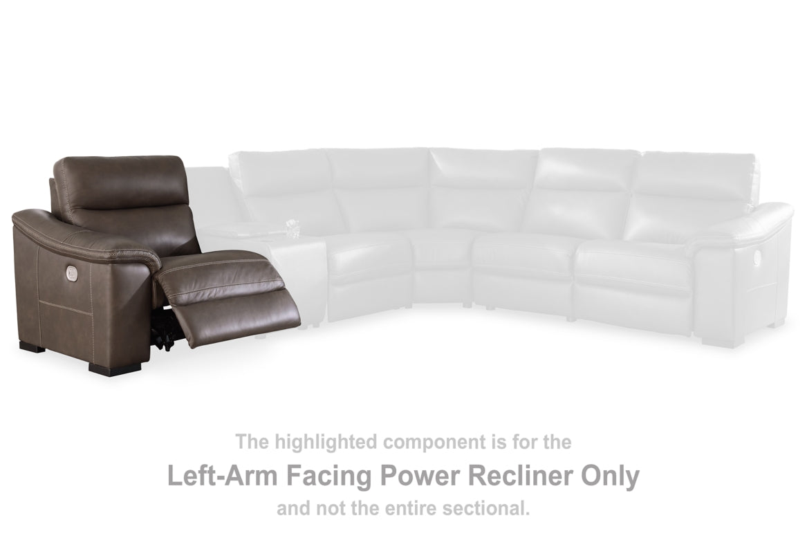 This left-arm facing power recliner is made with a combination of leather and faux leather upholstery. Fully finished on all sides, it pairs with other items in the series to make a modular sectional.