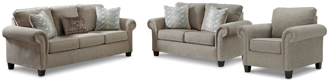 Sporting traditional elements including roll arms with nailhead trim, this upholstery package gives here-and-now relevance to a classic style. The lovely pewter shade of the textured chenille upholstery brings a relaxed sensibility. Mix in contrasting tapered legs for a striking look you're sure to love for years to come.