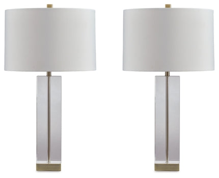 Crystal vision. A clear choice for those with a modern sensibility, this crystal table lamp set masters the art of understated elegance. Touches of goldtone metal and a crisp fabric shade perfect the aesthetic.
