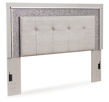 Bright, bold luxury. This queen upholstered headboard dazzles with its attention to detail. Your love of glamorous style is reflected in the tufted upholstery with faux alligator effect, exquisitely paired with faceted chrome-tone and glitter details. Complete with LED lighting, it inspires you to live luxuriously every day—from waking up to reading before bed.
