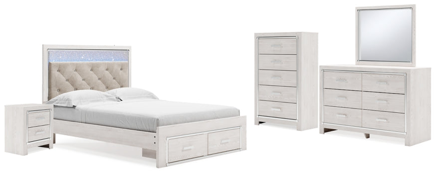 The epitome of fashion-forward design, this bedroom set is a beautiful blend of comfort and luxury. Shiny chrome-tone accents on the case pieces, a pearlized finish and mosiac pulls bring a glam touch to the richly rustic appearance.