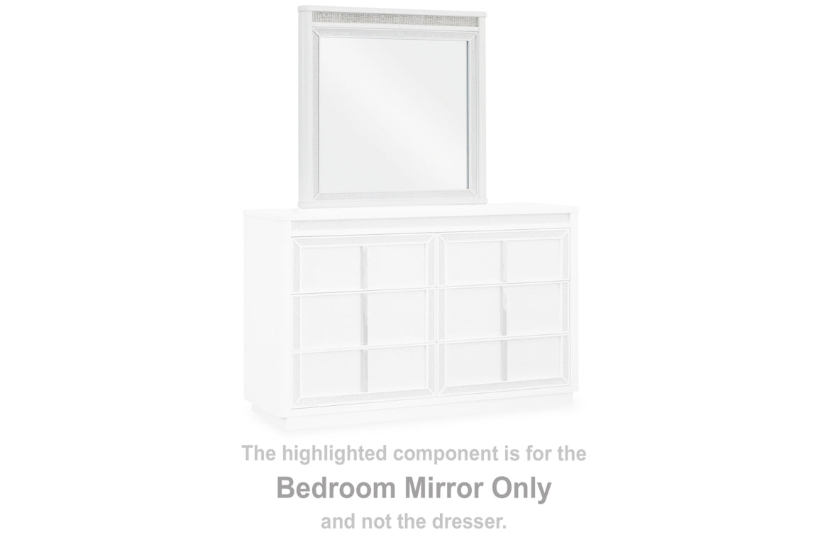 This bedroom mirror is made with solid wood components, MDF substrate and decorative laminate. Pairs with other items in the series to make a dresser and mirror kit.