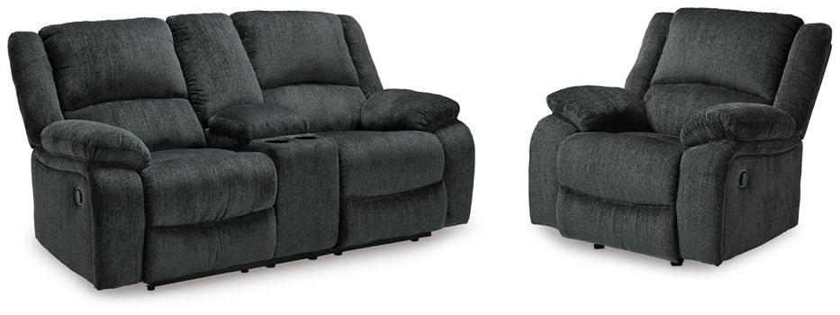 Built for luxury, this reclining loveseat with center console and matching recliner lets you kick back in reliable style. The thick, softly textured chenille upholstery provides a comfy surface on which to lounge. With bustle back construction and thickly cushioned armrests, this piece gives you the dependable support you need to unwind with the convenience of the center console to ease your evening.