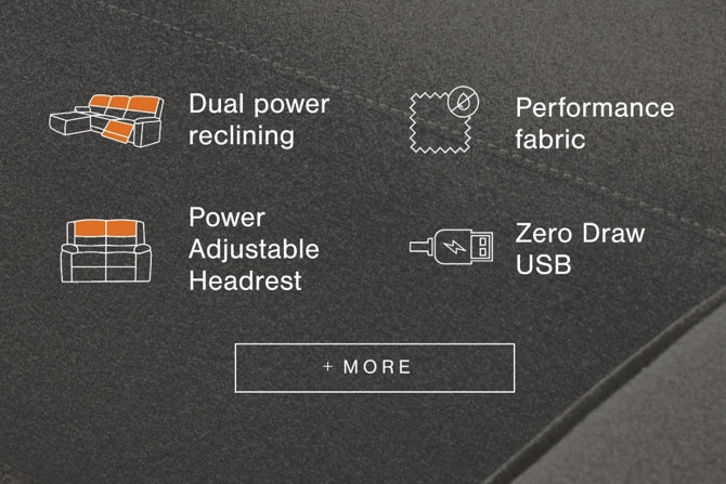 Looking cool and contemporary is great. But when it comes down to it, you’re all about low-maintenance lounging. With the performance fabric on this power reclining sectional with chaise, cleaning spills is a breeze. Its modular design caters to your ever-changing needs. And the console's plexiglass top is the perfect beverage perch during family movie night or when guests drop by. It's proof that modern design and superb comfort go hand in hand.